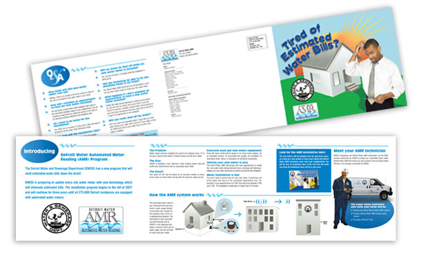 3-panel brochure for the Detroit Automated Meter Reading. This was one of many pieces that went out to residents keeping them informed throughout the project.
