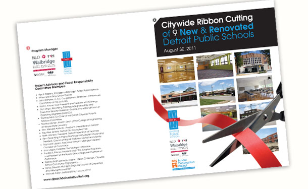 16-page Program Booklet for the Detroit Public Schools Ribbon Cutting Ceremony.