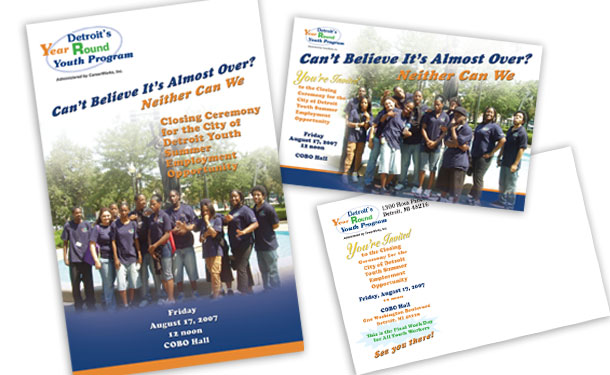 Program booklet and invitation for Detroit Year-Round Youth Program's closing ceremony.