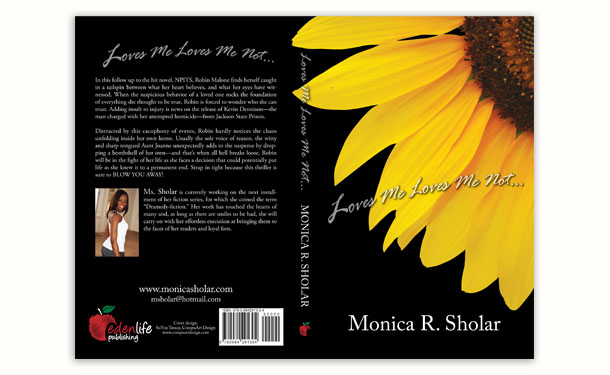Book Cover design and inside page layout for Loves Me Loves Me Not, a novel by Monica R. Sholar.