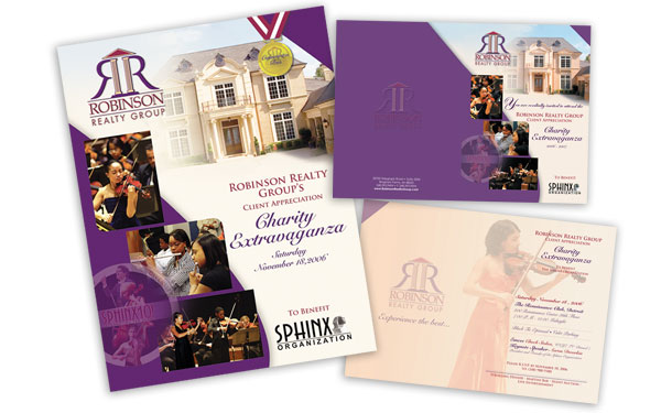 Program booklet and invitations for the Robinson Realty Group's Client Appreciation Charity Extravaganza.