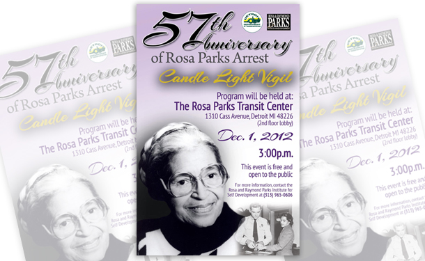 Flyer for Rosa Parks Candle Light Vigil at the Rosa Parks Transit Center.
