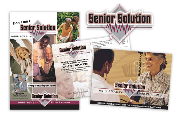 Flyer and postcard design for Senior Solution radio program.